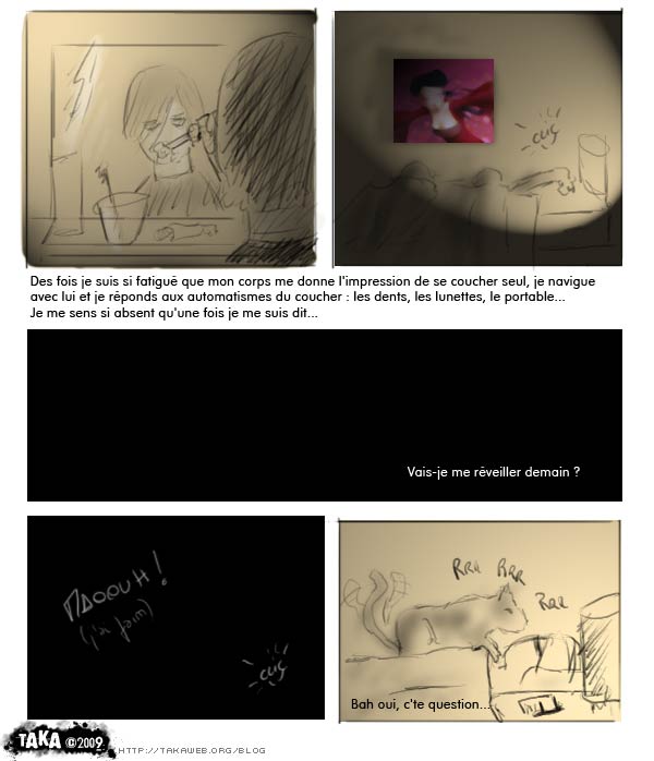 Le chat qui réveil je connais mais le mien est moins sympa il commence par piquer les pieds et le cercle vicieux : "je dessine moins donc je dessine moins bien donc j’ai de moins en moins le courage de dessiner" je connais aussi et là j’ai pas la solution non plus … courage