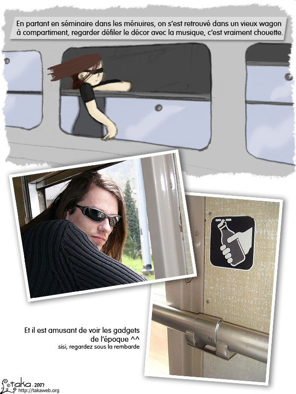 Les compartiments étaient déserts, tout le monde allait dans les wagons plus modernes, il n’y avait que nous et le gugusse qui vérifie les billets, donc forcément, on ne l’a pas vu longtemps